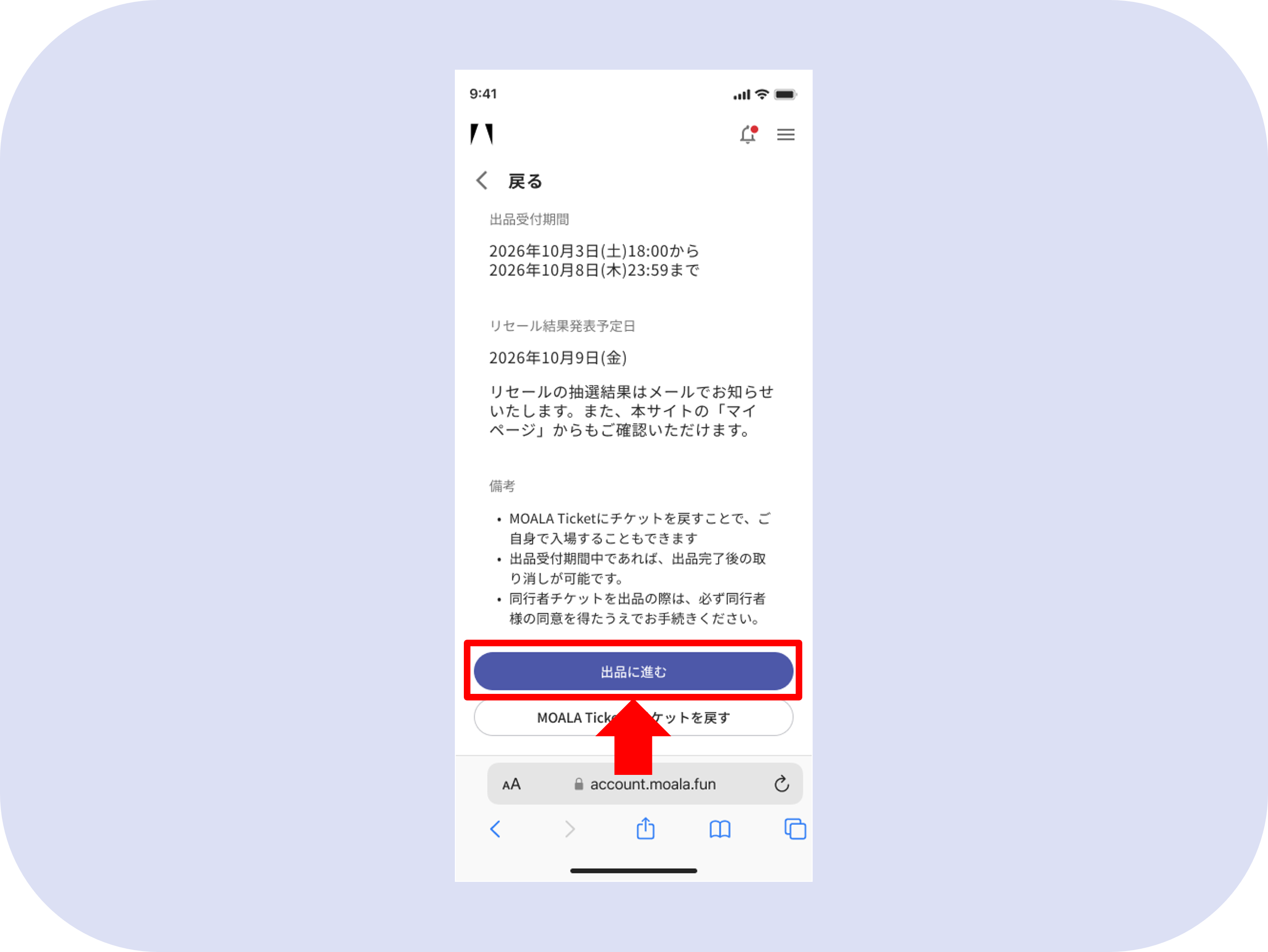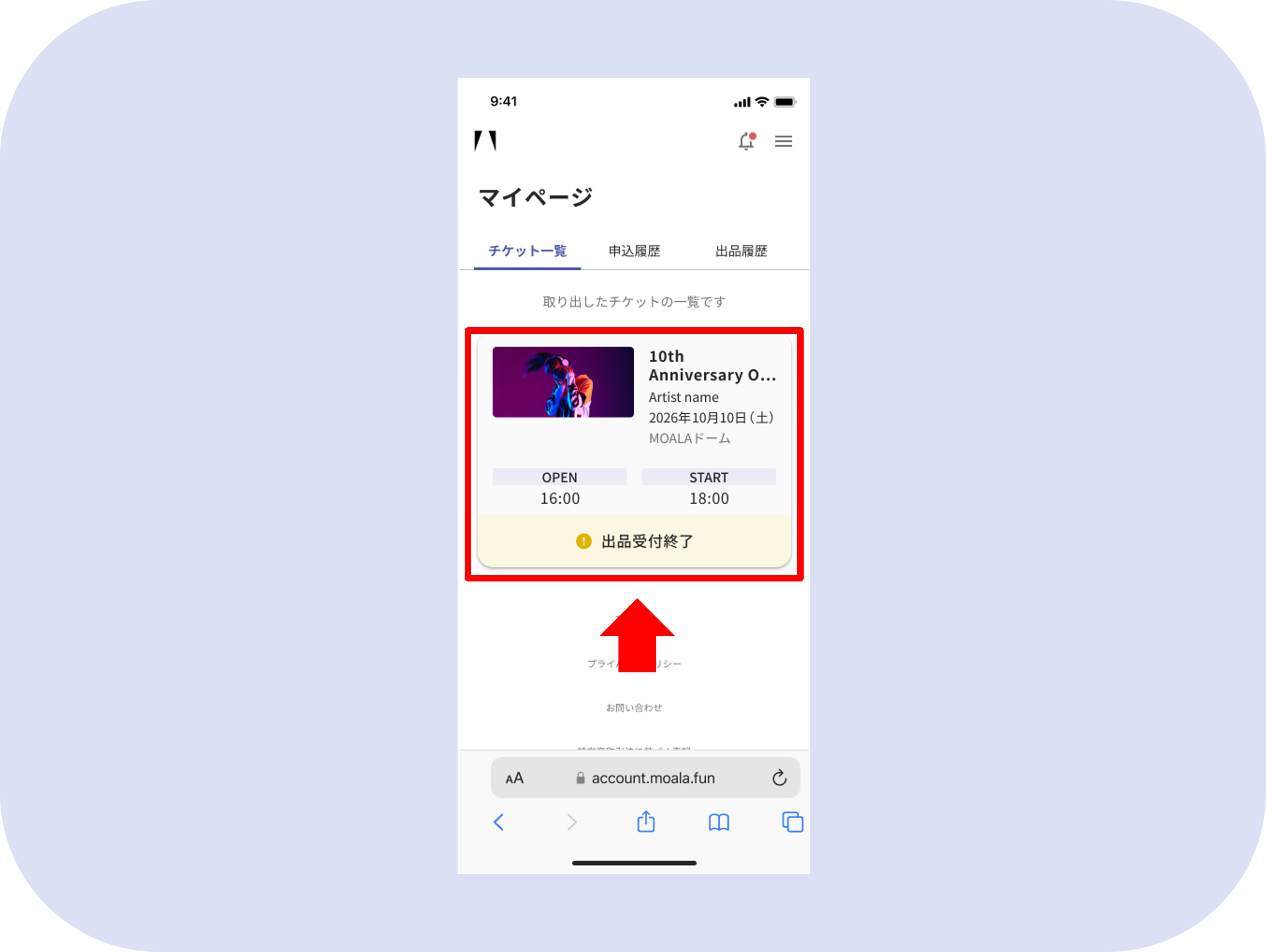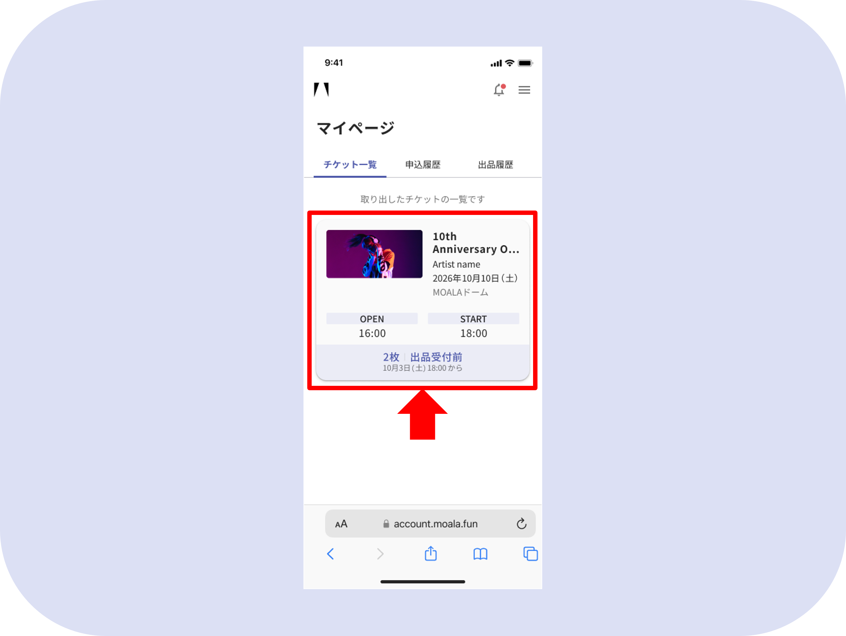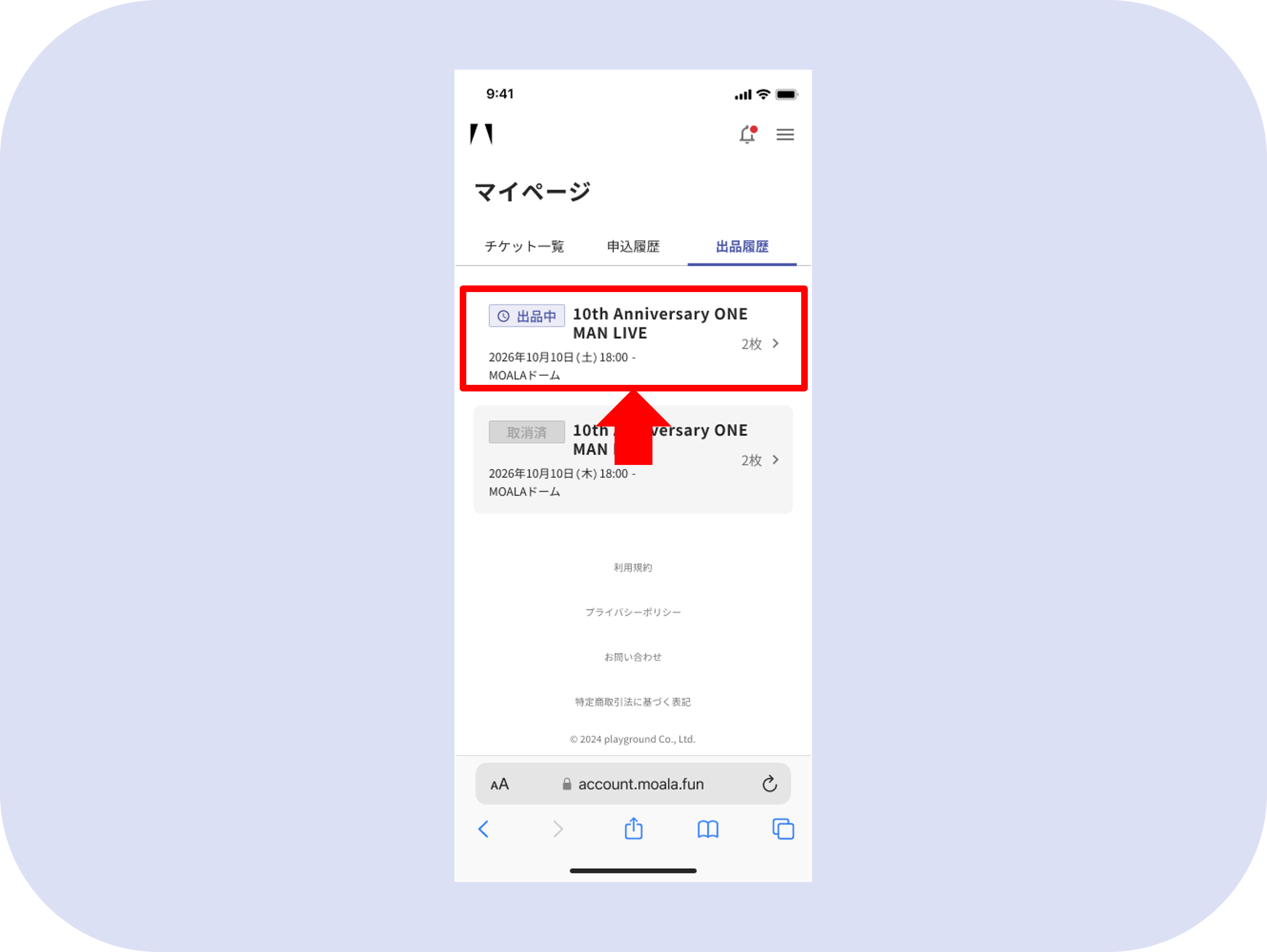 MOALA Ticketからチケットを取り出し、公式リセールサイトでチケットを出品してください。