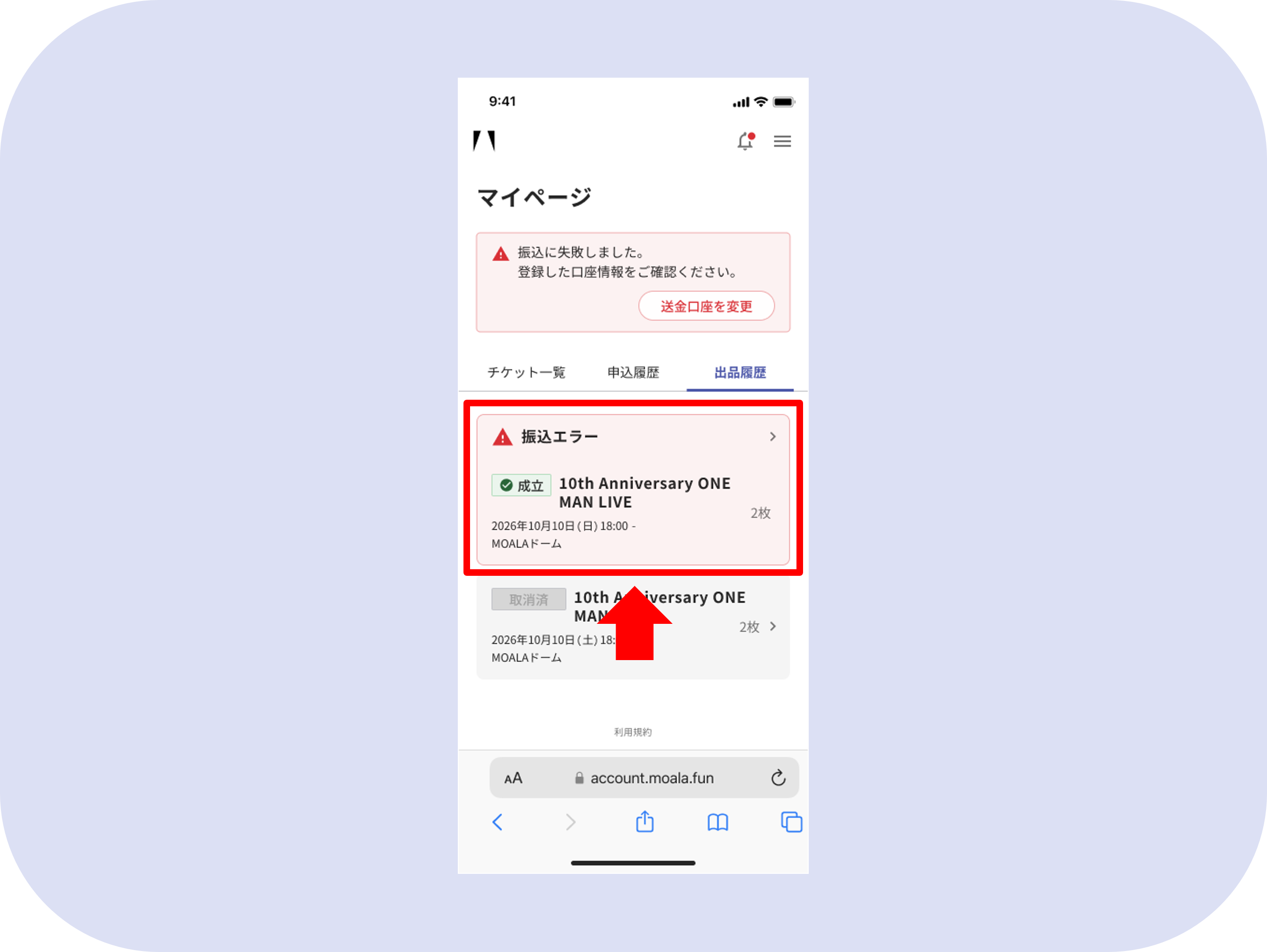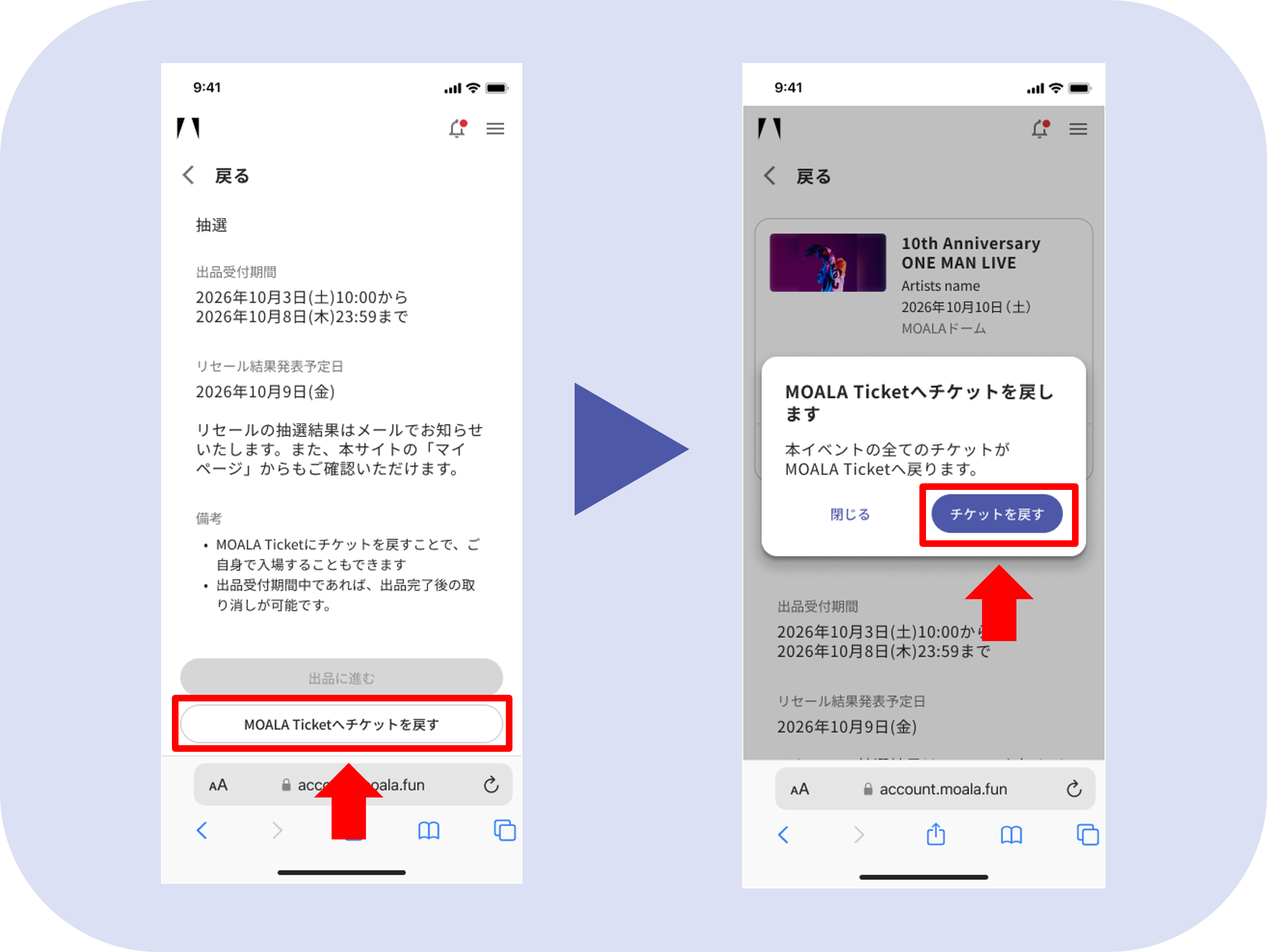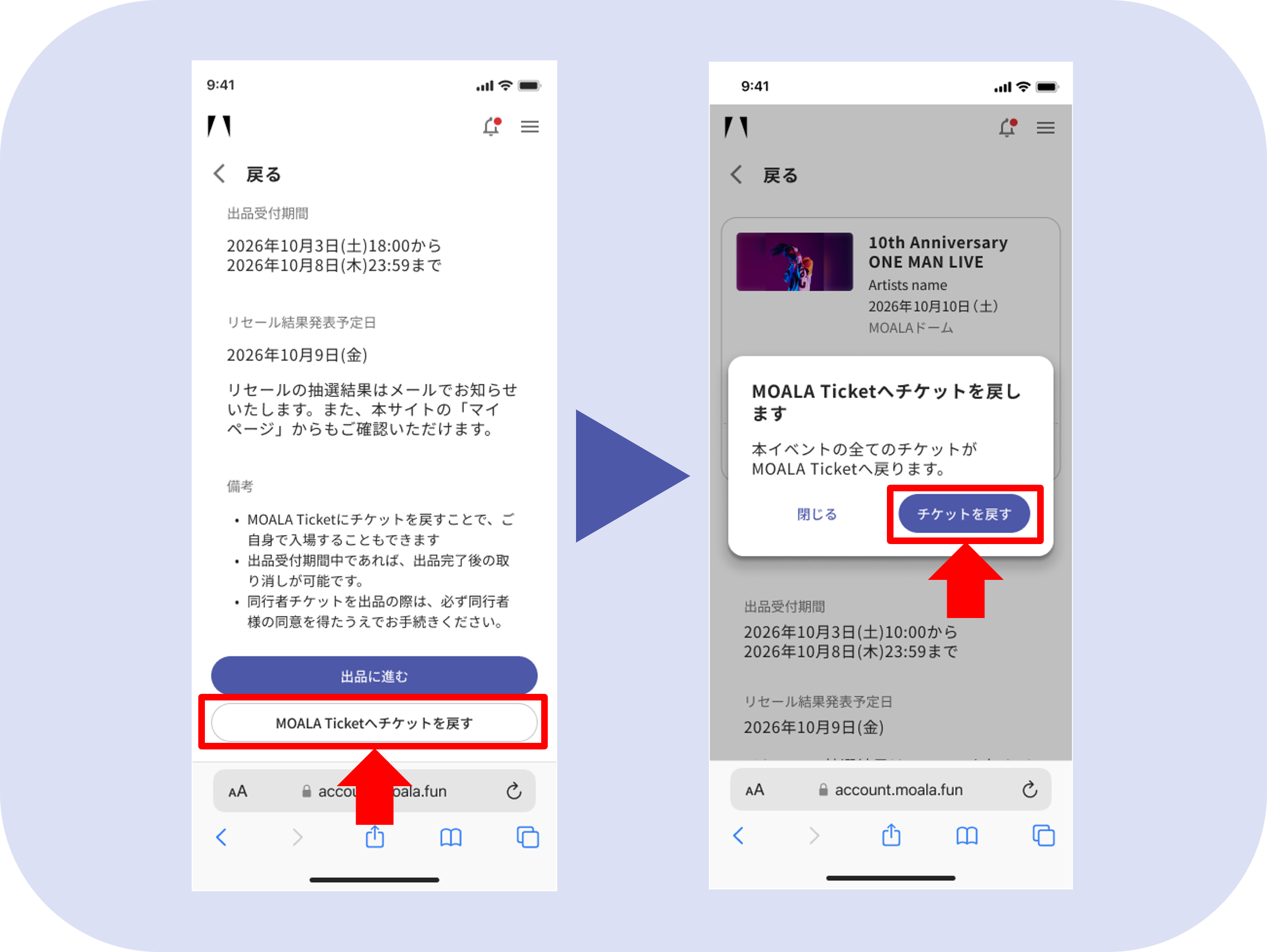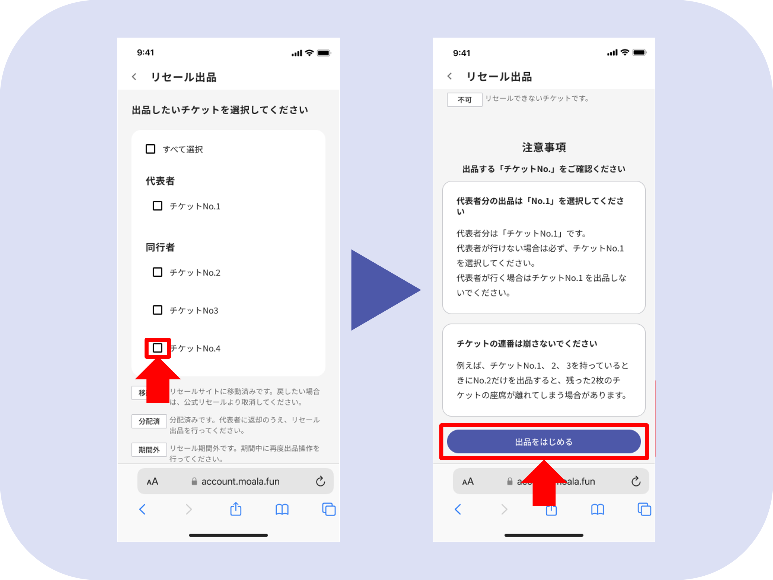 MOALA Ticketからチケットを取り出し、公式リセールサイトでチケットを出品してください。