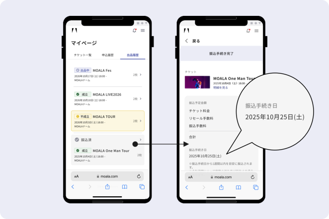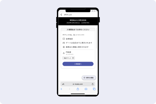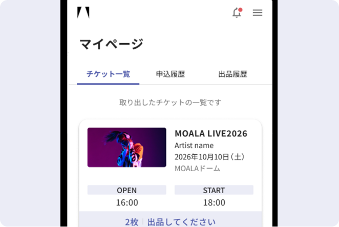 ※チケットが表示されない場合は、ログインしているMOALAのアカウントが間違っている可能性があります。