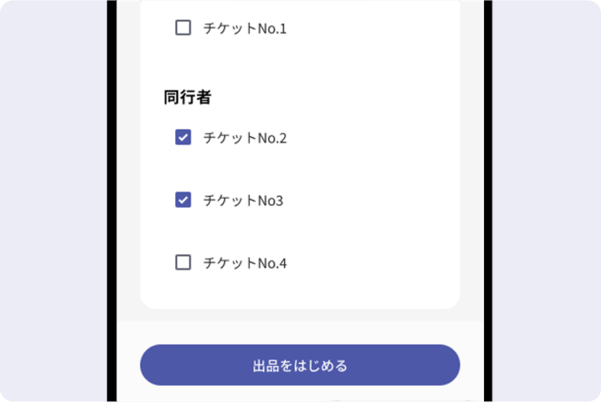 選択したチケットが出品したいチケットであることを確認し、[出品をはじめる]を押してください。