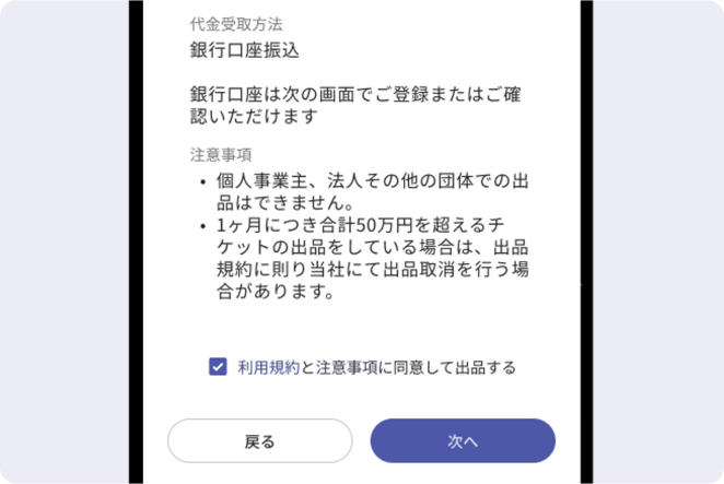 リセール出品の注意事項を確認後、出品をはじめてください。