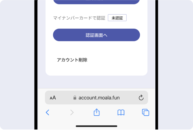 認証を完了しMOALAのアカウントページに戻る