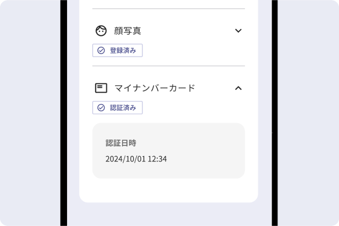 にてマイナンバーカードで認証が「認証済み」となっていることを確認してください。