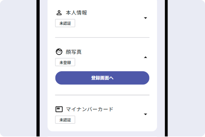 にて顔写真の[登録画面へ]を押してください。