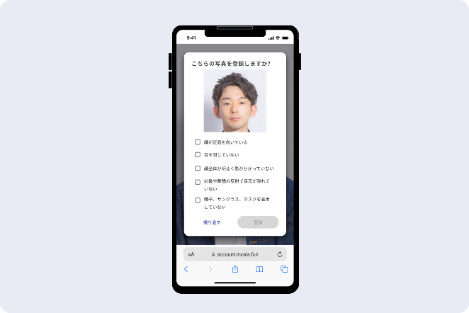 顔写真登録時の注意事項を確認