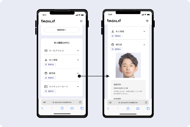 [新規登録・ログイン]を押して顔写真登録と本人確認を行ったMOALAのアカウントでログインしてください。