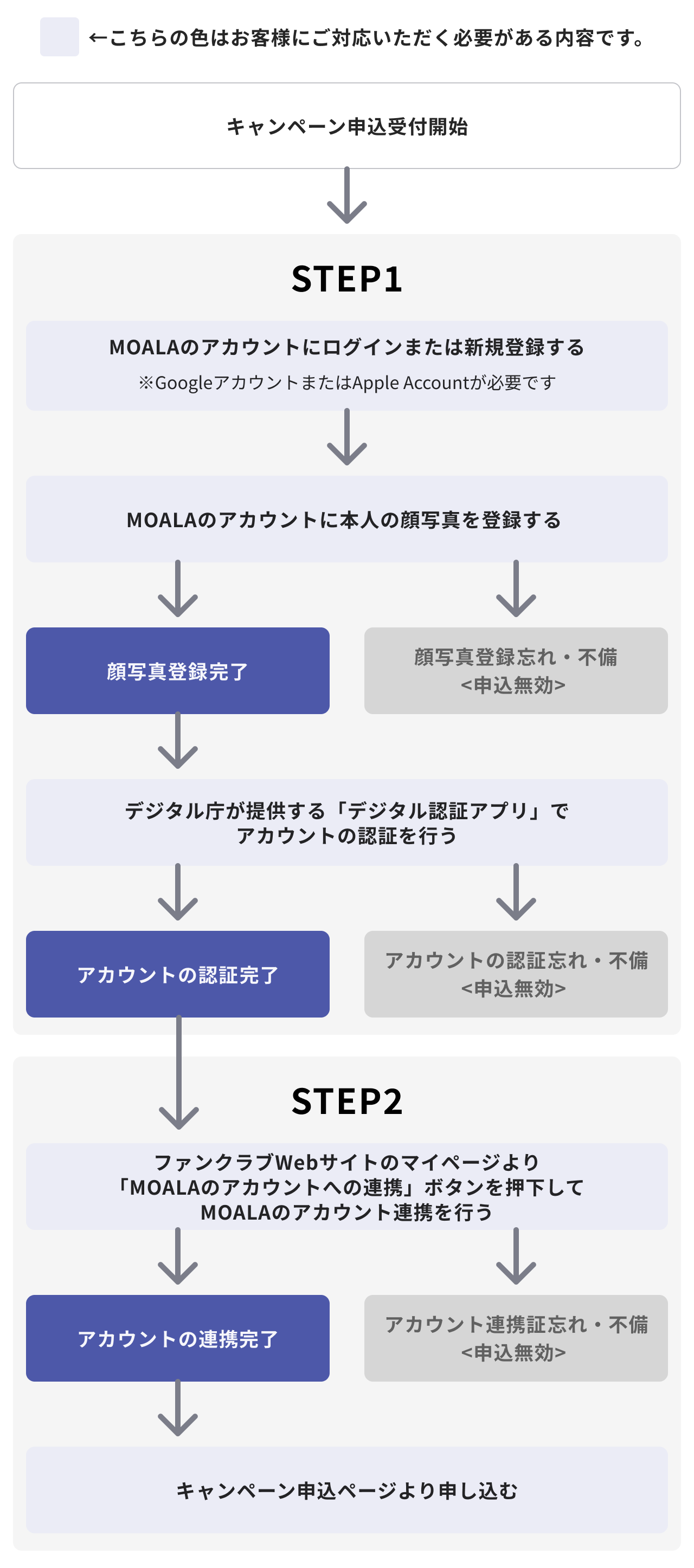 [MOALAのアカウントへの連携]を押して、下記推奨ブラウザにてMOALAのアカウントにログインしてください。